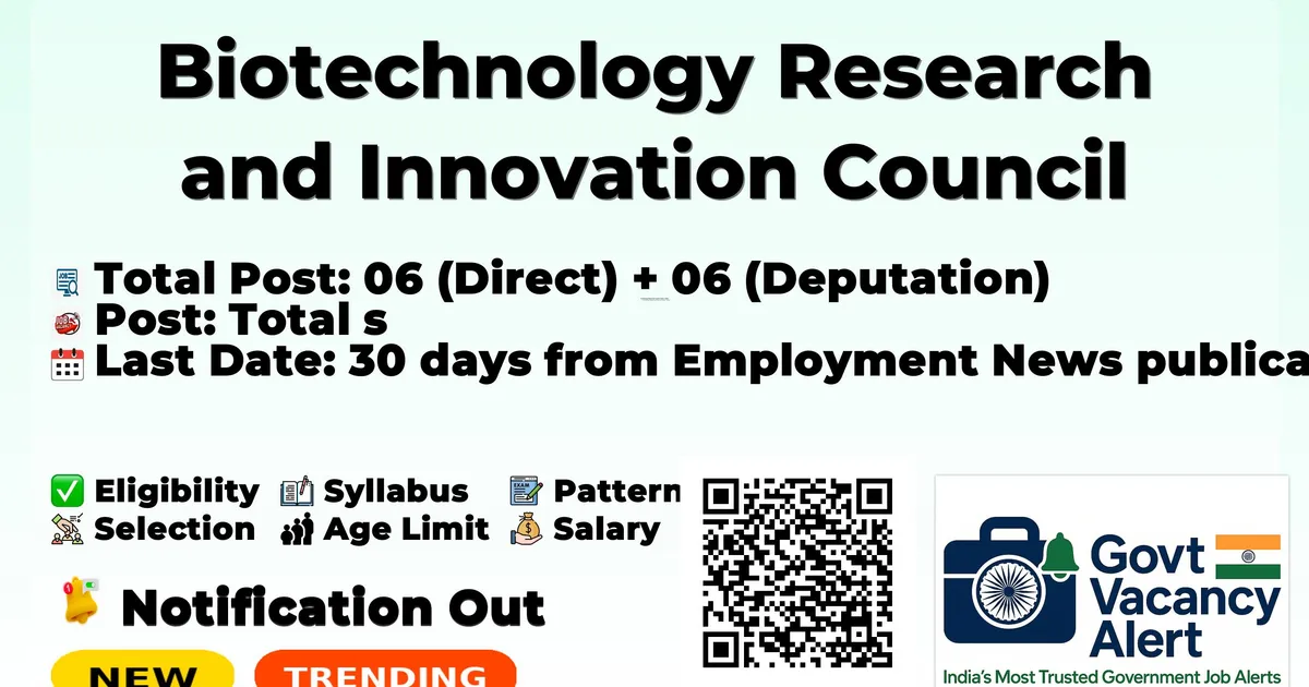 Biotechnology Research and Innovation Council (BRIC) has released an official notification for the recruitment of 12 BRIC Secretariat Posts. Interested and eligible candidates can apply Offline through the official BRIC website. The last date to submit the application form is 21-12-2025. In this article, you’ll find the BRIC Secretariat Posts recruitment details, including eligibility criteria, age limit, salary structure, selection process, application steps, and direct links to the official notification and Offline application form.