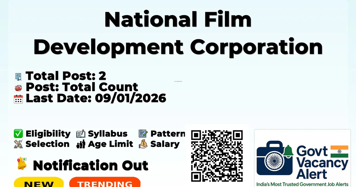 National Film Development Corporation (NFDC) has released an official notification for the recruitment of 02 Senior Programmer, Senior Executive Posts. Interested and eligible candidates can apply Online through the official NFDC website. The last date to submit the application form is 09-01-2026. In this article, you’ll find the NFDC Senior Programmer, Senior Executive Posts recruitment details, including eligibility criteria, age limit, salary structure, selection process, application steps, and direct links to the official notification and Online application form. Trending Govt Jobs RRB 22000 Group D Online form 2026 BARC Scientific Officers Online Form 2026 SBI 996 SCO Online Form 2025 BSF Constable GD Online Form 2025-26 SSC 25487 GD Constable Online Form 2025 Advertisement Company Name National Film Development Corporation Ltd (NFDC) Post Name Senior Programmer – Gaming & XR/VR Programming, Senior Executive – Marketing & Business Development Consultant No of Posts 2 Salary Rs. 60,000/- to Rs. 1,20,000/- per month Qualification Graduate/PG/MBA in relevant fields Age Limit Up to 45 years Start Date for Apply 29/12/2025 Last Date for Apply 09/01/2026 Official Website nfdcindia.com Post Name Total Post Count Senior Programmer – Gaming & XR/VR Programming 1 Senior Executive – Marketing & Business Development Consultant 1 Qualifications (Senior Programmer): Graduate / PG / MBA in Mass communication, Marketing, Media studies, Management studies, or Business Administration. Experience (Senior Programmer): 10 years in international film festival/ film market/ production house; experience in content marketplaces, film festivals, or AVGC sector. Desirable (Senior Programmer): Proven track record with international collaborations and government initiatives. Strong networks, excellent communication and pitching skills, understanding of co-production models. Familiarity with platforms like Film Bazaar, Marché du Film, MIPTV, or Annecy tools, flexible for global travel. Qualifications (Senior Executive): Graduate/PG/MBA in Marketing, Media Management, or Business Administration. Experience (Senior Executive): 8 years in international media marketing or business development; experience in content marketplaces, film festivals, or AVGC sector. Desirable (Senior Executive): Proven track record with international collaborations and government initiatives. Strong networks, excellent communication and pitching skills, understanding of co-production models. Familiarity with platforms like Film Bazaar, Marché du Film, MIPTV, or Annecy tools, flexible for global travel. Senior Programmer – Gaming & XR/VR Programming: Rs. 1,20,000/- per month. Senior Executive – Marketing & Business Development Consultant: Rs. 60,000/- per month. Salaries are consolidated pay, all inclusive. Maximum age limit for all posts is up to 45 years. Event Date Last Date to Apply (till 6:00 pm) 09/01/2026 Selection process details are not explicitly mentioned in the provided PDF. Management reserves the right to reject any application/candidature at any stage. Interested candidates must fill up the application form on the NFDC LinkedIn Portal. NFDC is not responsible for postal delays or loss of applications. Selected candidates may be required to serve anywhere in India. Candidates must keep their e-mail IDs active for at least one year. Any amendments or corrigendum will only be available on the Samarth Portal/NFDC website. Canvassing will disqualify a candidate. Legal proceedings are subject to the jurisdiction of Courts at Mumbai. Management reserves the right to relax age/qualification for deserving candidates, reject applications, or cancel recruitment. Contract hiring will be through an outsourced agency selected by NFDC Ltd. Candidates may fill up the application form on the NFDC LinkedIn Portal. The last date for application submission is 09/01/2026 till 6:00 pm. Apply Online: Click here Official Notification PDF: Click here Official Website: Click here Join Arattai Channel: Click Here Join Telegram Channel: Click Here Join WhatsApp Channel: Click Here Sarkari Result: Click Here Download Mobile App: Click Here