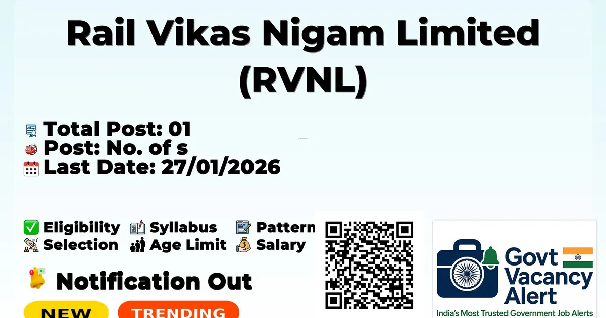 Rail Vikas Nigam (RVNL) has released an official notification for the recruitment of 01 General Manager Posts. Interested and eligible candidates can apply Offline through the official RVNL website. The last date to submit the application form is 27-01-2026. In this article, you’ll find the RVNL General Manager Posts recruitment details, including eligibility criteria, age limit, salary structure, selection process, application steps, and direct links to the official notification and Offline application form.