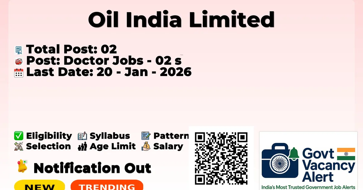 Oil India Limited (Oil India) has officially released the notification to fill the vacancies of 02 Doctor Posts. Interested and eligibile candidates can use this opportunity to apply for these posts before the last date of application. Candidates who have completed their MBBS can apply for the Oil India Jobs 2026. The interested applicants can attend the walk-in interview. Here we have mentioned the education details, age limit, selection process, application fee, salary, and how to apply for these posts before the deadline. The application dates have already begun.