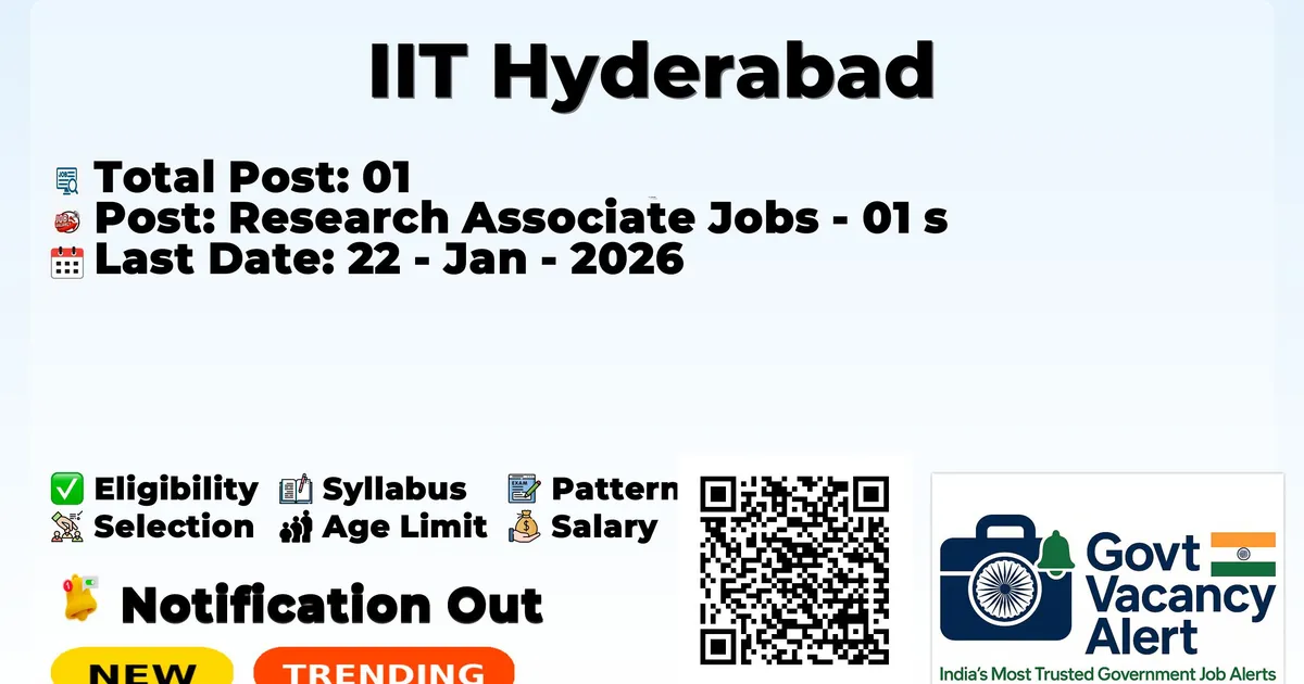 The Indin Institute of Technology Hyderabad (IIT Hyderabad) has officially released the notification to fill the vacancies of 01 Research Associate Posts. Interested and eligibile candidates can use this opportunity to apply for these posts before the last date of application. Candidates who have completed their B.E./B. Tech, M.E./M. Tech in Computer Science Engineering can apply for the IIT Hyderabad Jobs 2026. The interested applicants can apply in offline mode. Here we have mentioned the education details, age limit, selection process, application fee, salary, and how to apply for these posts before the deadline. The application dates have already begun.