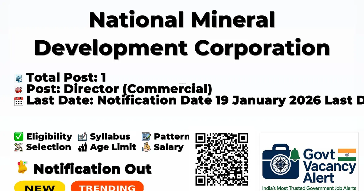 National Mineral Development Corporation (NMDC) has released an official notification for the recruitment of Director Posts. Interested and eligible candidates can apply Online through the official NMDC website. The last date to submit the application form is 09-02-2026. In this article, you’ll find the NMDC Director Posts recruitment details, including eligibility criteria, age limit, salary structure, selection process, application steps, and direct links to the official notification and Online application form.