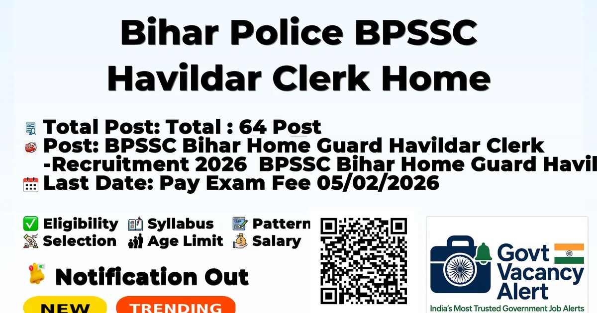 - BPSSC Bihar Home Guard Havildar Clerk Recruitment for Various Post Candidate Can Apply Between 05/01/2026 to 05/02/2026