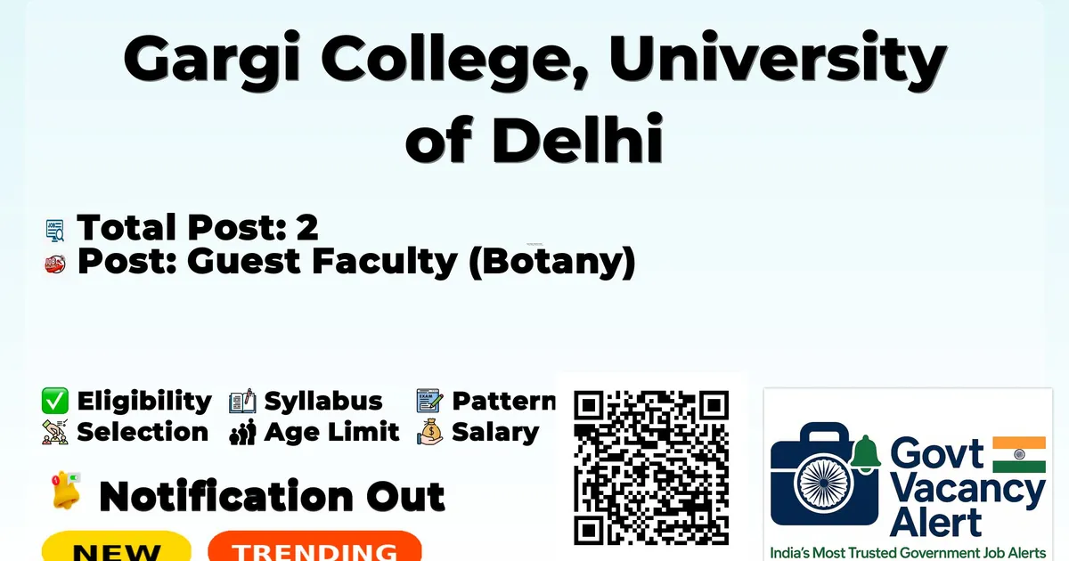Company Name Gargi College, University of Delhi Advt No. GC/35 (Guest)/2026 Post Name Guest Faculty (Botany) No of Posts 2 Qualification Necessary qualification and eligibility as per UGC/University of Delhi norms. Walk in Date 27/01/2026 Official Website www.gargicollege.in