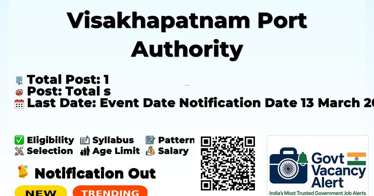 Visakhapatnam Port Authority has officially released a notification for the recruitment of 1 Senior Deputy Chief Accounts Officer Posts. This recruitment drive offers a great opportunity for candidates looking for government jobs. Interested and eligible candidates can apply online through the official website.