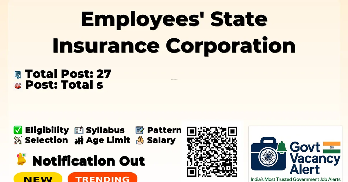Employees' State Insurance Corporation (ESIC) Recruitment 2026: Employees' State Insurance Corporation is conducting a Walk-in Interview for 27 Teaching Faculty for Super Specialty Department posts. This recruitment provides an excellent opportunity for eligible candidates to attend the interview directly without any prior online application.