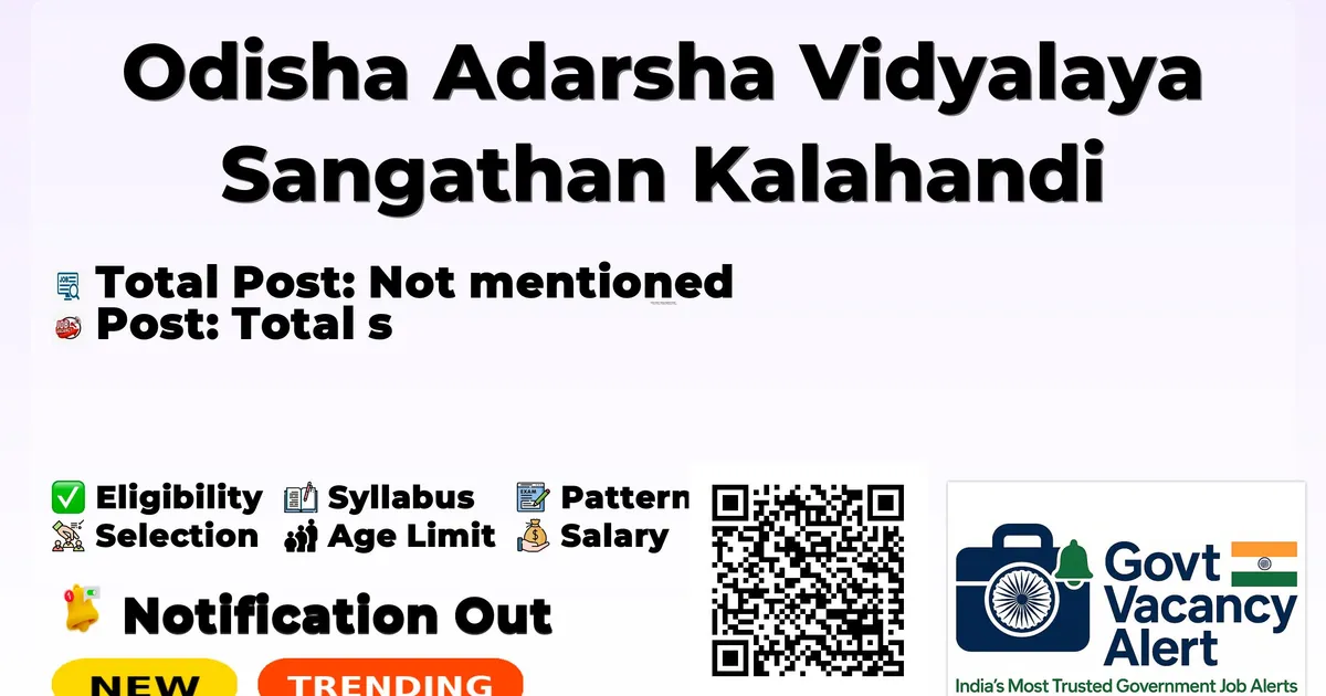 Company Name Odisha Adarsha Vidyalaya Sangathan Kalahandi Post Name Contractual Teachers No of Posts Not mentioned Salary PGTs: Rs. 25,000/- to Rs. 30,000/- per month. TGTS: Rs. 20,000/- to Rs. 25,000/- per month. Qualification PGTs require Integrated Post Graduate Course or Master Degree with B.Ed. TGTS require Integrated Degree Course or Bachelor Degree with B.Ed. Specific subject qualifications apply. OSSTET/OTET-Paper-II or CTET-Paper-II is mandatory for TGTS. Age Limit Min: 18 years, Max: 65 years Walk-in Date 31 March 2026 Apply Mode Walk-in Job Type Contract