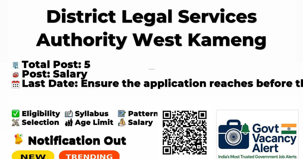 District Legal Services Authority West Kameng (DLSA West Kameng) Recruitment 2026: District Legal Services Authority West Kameng has released the official notification for 5 Office Peon,Office Assistant and More Posts, inviting applications from eligible candidates. This recruitment provides an excellent opportunity for candidates seeking stable and well-paid government jobs.