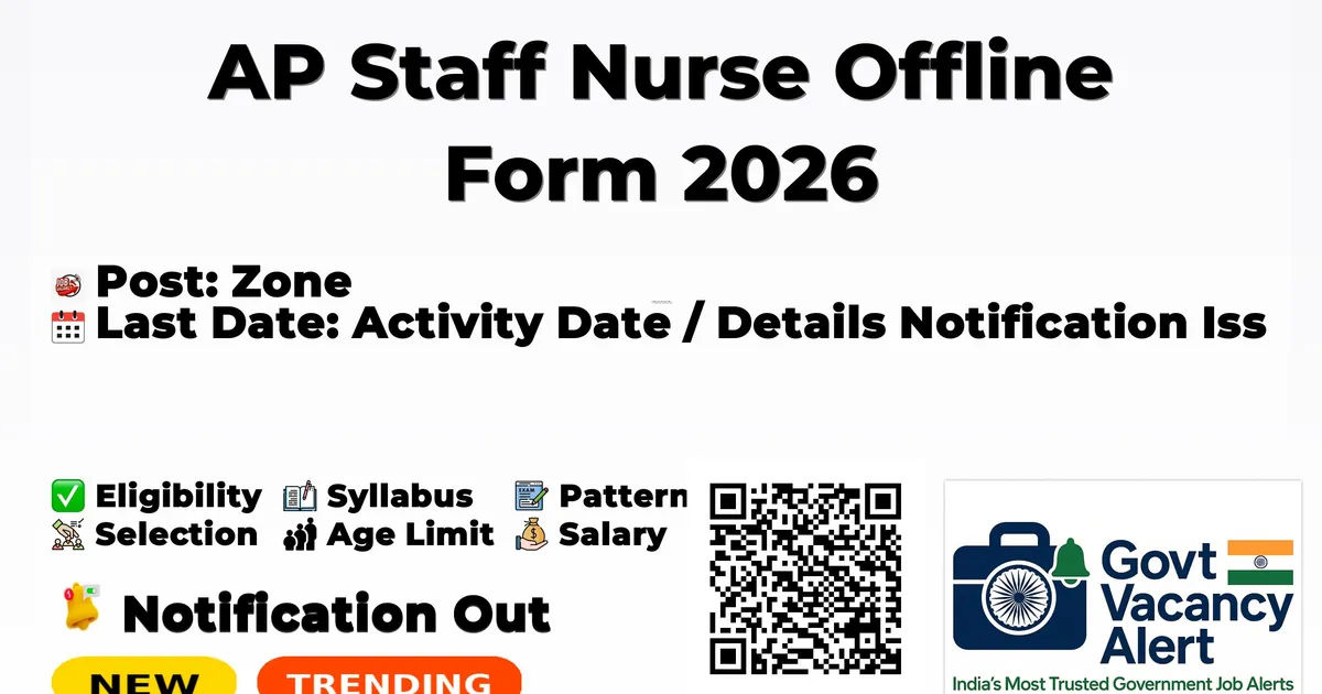 Particulars Details Organisation Government of Andhra Pradesh, Medical and Health Department Notification No. 01/2026 Dt 17-03-2026 Post Name Staff Nurse Total Vacancies 150 (Zone III – Guntur) Type of Appointment Contract Basis (Zonal Cadre) – initially for 1 year Hospital / Location GGH Piduguralla, Palnadu District Educational Qualification General Nursing & Midwifery (GNM) / B.Sc (Nursing) Age Limit Upper limit 42 years (as on 01.03.2026) Application Fee (OC) ₹500 (Demand Draft) Application Fee (SC/ST/BC/PH) ₹300 (Demand Draft) Application Mode Offline only Application Start Date 17 March 2026 (10:00 AM) Last Date to Apply 25 March 2026 by 05:00 PM Selection Process Merit List based on marks (Total 100 marks) Official Website http://cfw.ap.nic.in