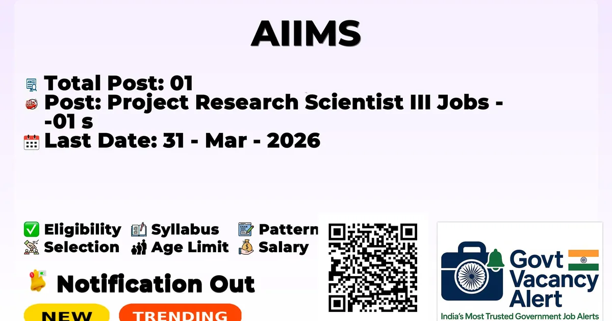 AIIMS — Project Research Scientist III Jobs - 01 Posts