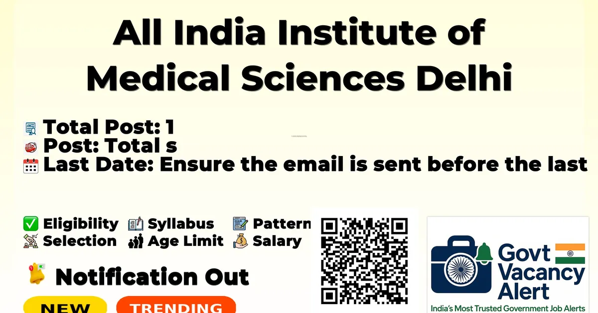 Company Name All India Institute of Medical Sciences Delhi (AIIMS Delhi) Post Name Project Technical Support III No of Posts 1 Salary Rs. 28,000/- Per Month Qualification 3 year graduate in relevant field / subject + 3 years experience or PG in relevant subject /field. Age Limit Max: 35 years Last Date 01-04-2026 Apply Mode Email Job Type Contract