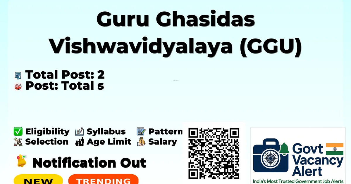 Company Name Guru Ghasidas Vishwavidyalaya (GGU) Post Name Field Investigator No of Posts 2 Salary Rs. 12,500 Per Month Qualification M.A, M.Sc, MSW Walk-in Date 25 March 2026 Apply Mode Walk-in Job Type Temporary