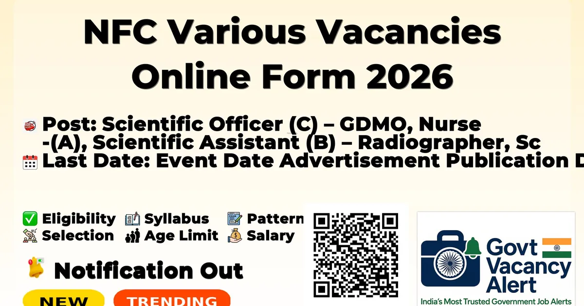 NFC has published the official notification vide Advertisement No. NFC/01/2026 published in Employment News and leading newspapers on 21.03.2026. The detailed notification and online application link are available on the official NFC website.