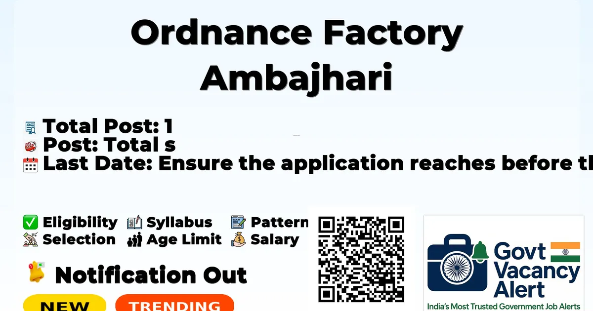 Candidates who are interested in applying for the Ordnance Factory Ambajhari Recruitment 2026 should first download and carefully read the official notification PDF. The notification contains complete details about vacancy distribution, eligibility criteria, age limit, stipend/salary, selection process, important dates, and application instructions. Reading the official document is important to ensure that you meet all requirements before submitting the application form.