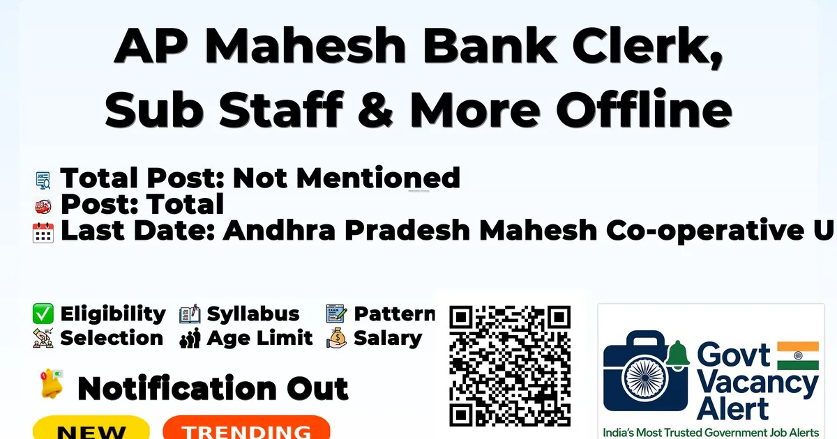| Andhra Pradesh Mahesh Co-operative Urban Bank (AP Mahesh Bank) Clerk, Sub Staff and More Vacancy 2026 | |