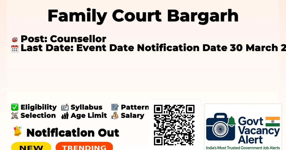 Family Court Bargarh (FC Bargarh) Counsellor Notification 2026 has been released on 30 March 2026 on the official website bargarh.dcourts.gov.in .Has been announced through the FC Bargarh Counsellor Recruitment 2026.