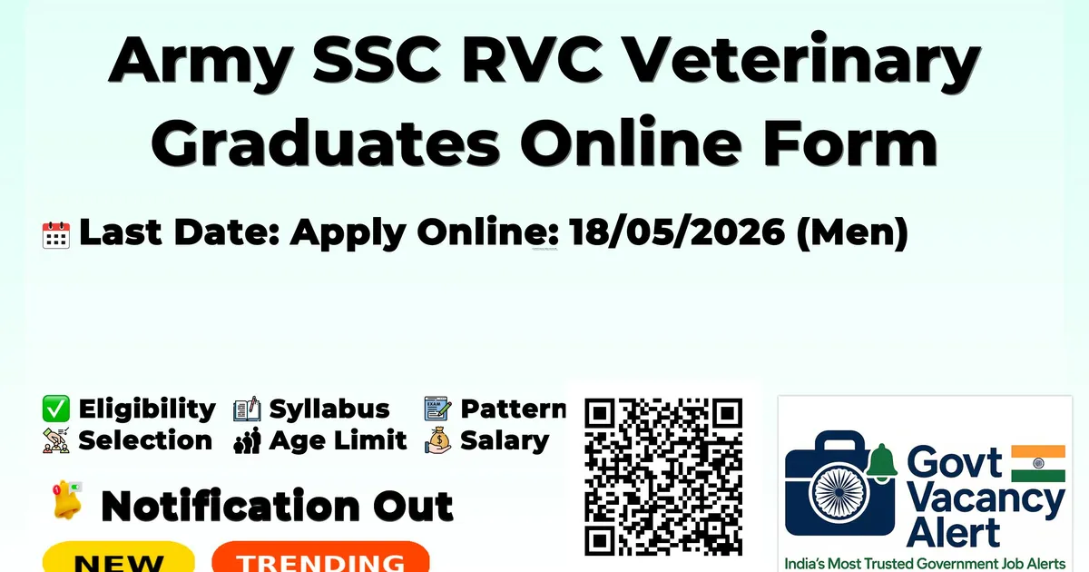 Army SSC RVC Veterinary Graduates Online Form 2026 — Latest Government Job