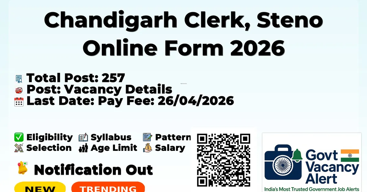 Chandigarh Clerk, Steno Online Form 2026 — Vacancy Details