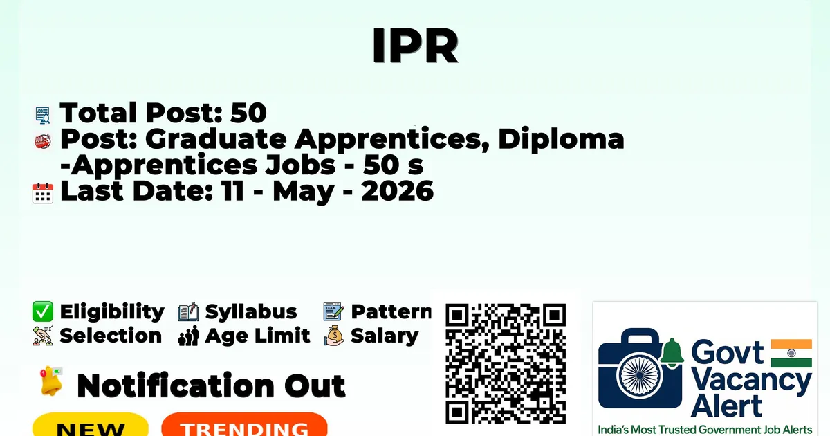 The Institute of Plasma Research (IPR) has officially released the notification to fill the vacancies of 50 Graduate Apprentices and Diploma Apprentices. Interested and eligibile candidates can use this opportunity to apply for these posts before the last date of application. Candidates who have completed their Diploma, B.E./B. Tech in Computer Science, Mechanical, Electrical, and Civil Engineering can apply for the IPR Notification 2026. The interested applicants can apply in online mode. Here we have mentioned the education details, age limit, selection process, application fee, salary, and how to apply for these posts before the deadline. The application dates have already begun.