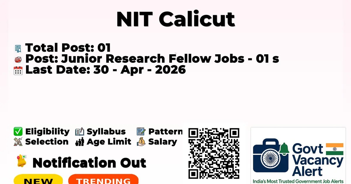 National Institute of Technology (NIT) Calicut has declared the official notification for 2026. To fill up the vacancies for Junior Research Fellow Jobs. Those candidates who have qualified in the B.E/ B.Tech, M.E/ M.Tech, and M.Sc can grab this chance and apply for the NIT Calicut Recruitment 2026. Here, we included the age limit, selection process, salary structure, education details, application fee, and how to apply for these posts.