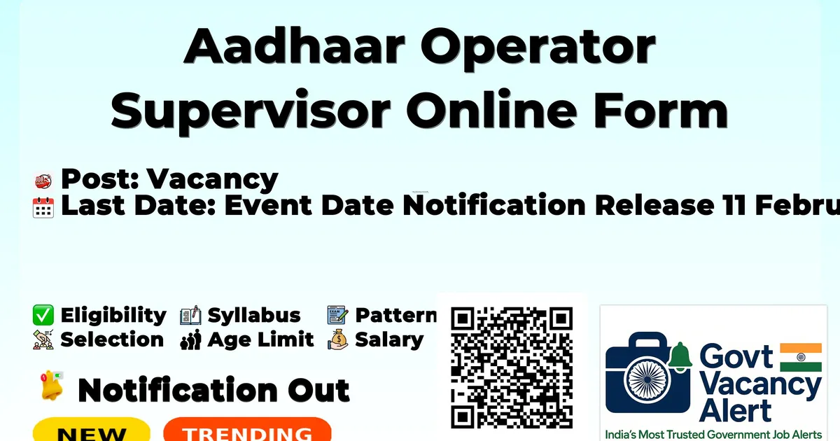 Aadhaar Operator Supervisor Online Form 2026 — Vacancy