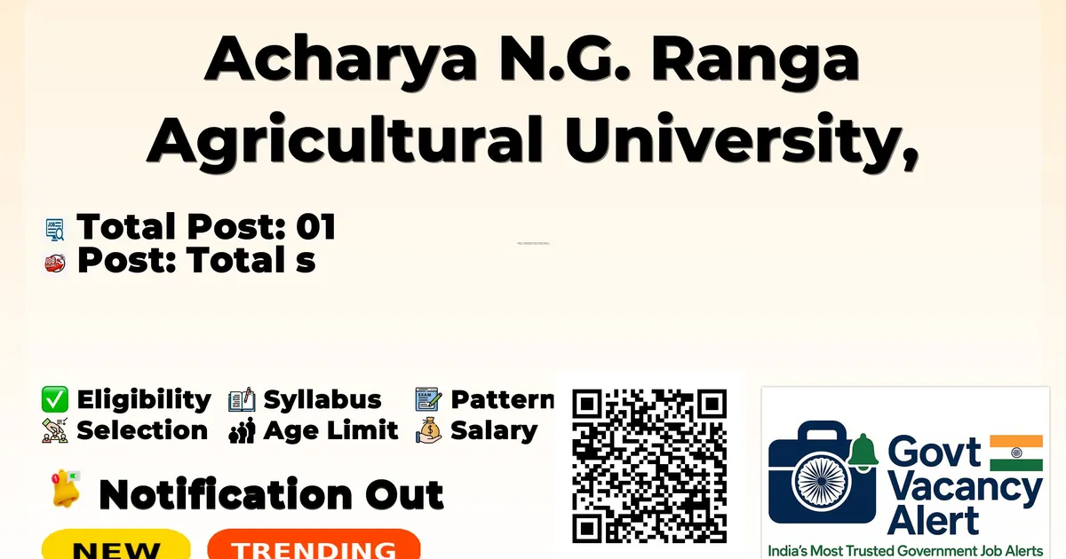 Company Name Acharya N.G. Ranga Agricultural University, Agricultural College, Pulivendula Post Name Teaching Assistant No of Posts 01 Salary Rs. 750/- per hour subject to a maximum of Rs.27,000/- per month Qualification Teaching Assistant Age Limit 35 years for Men 40 years for Women Date and Time of Interview 20.01.2026 at 10.30 AM Official Website angrau.ac.in