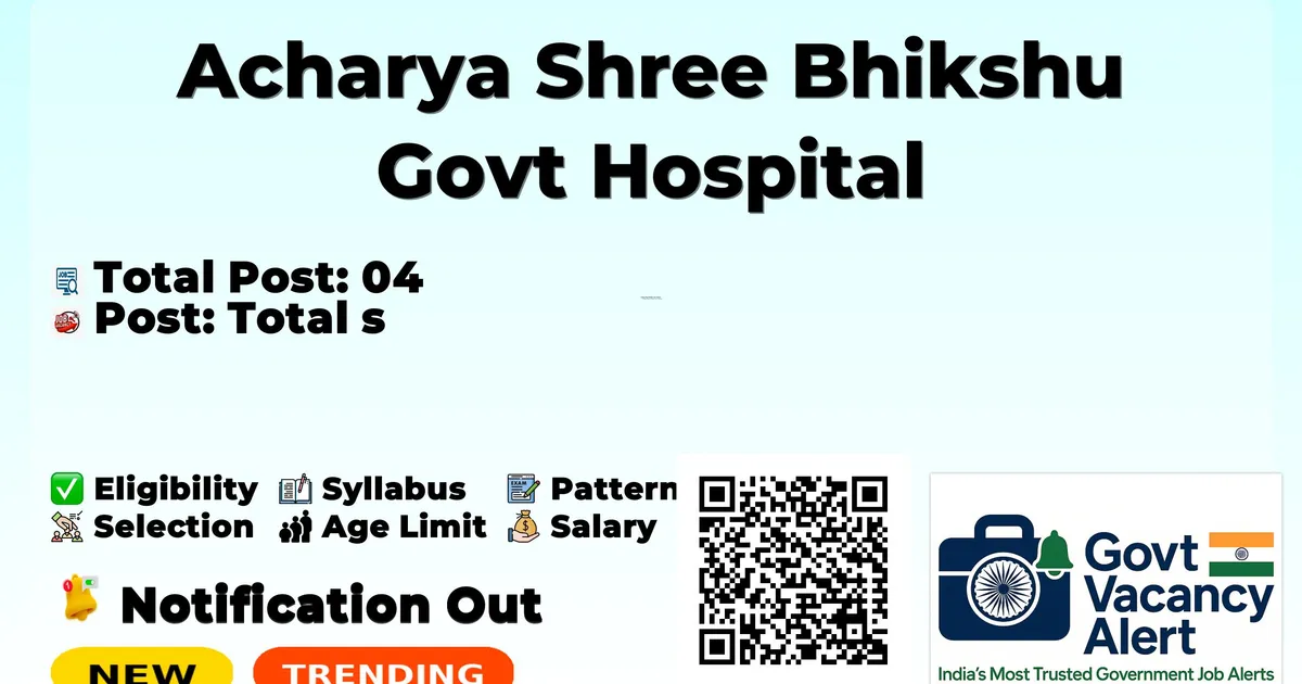 Company Name Acharya Shree Bhikshu Govt Hospital Post Name Senior Resident No of Posts 04 Salary Rs 67,700/ - Rs 2,08,700/- per month Qualification MD/DNB/Diploma Age Limit 45 Years Walk In Date 06/02/2026 Official Website asbh.delhi.gov.in