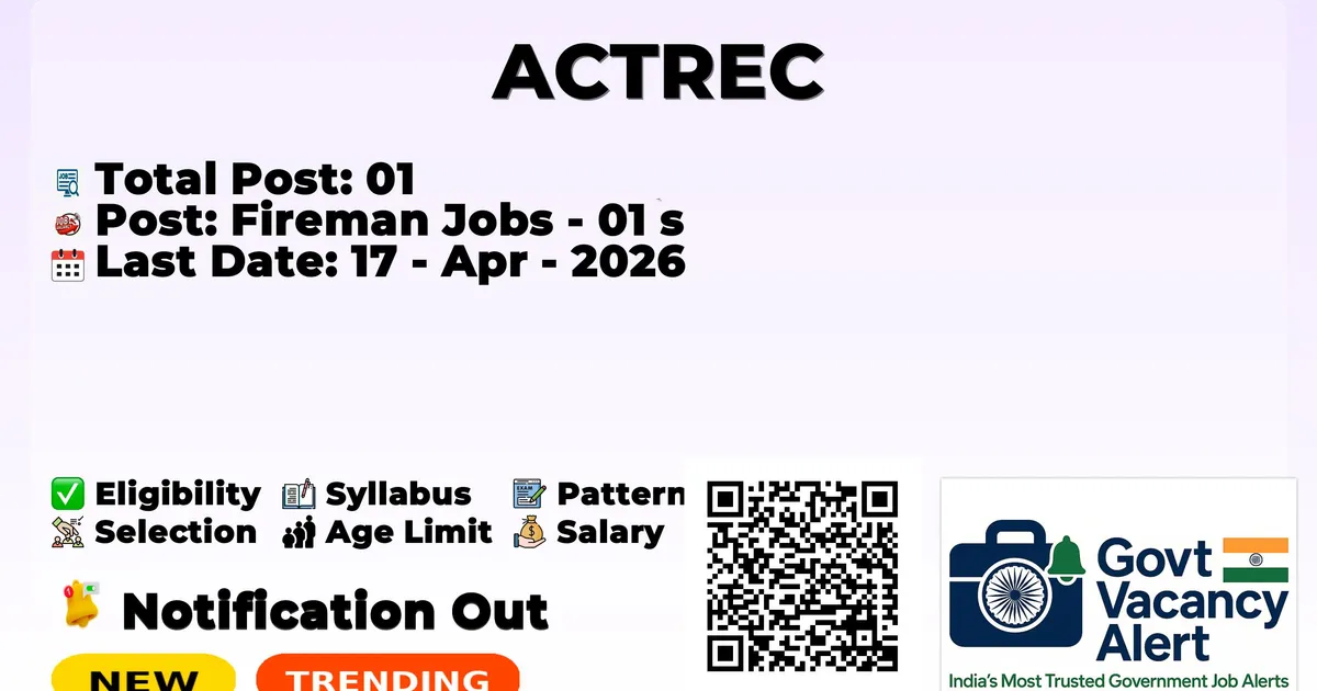The Advanced Centre for Treatment, Research and Education in Cancer (ACTREC) has declared the official notification for 2026. To fill up the vacancies for Fireman Jobs. Those candidates who have qualified in the 10th Pass can grab this chance and apply for the ACTREC Recruitment 2026. Here, we included the age limit, selection process, salary structure, education details, application fee, and how to apply for these posts.