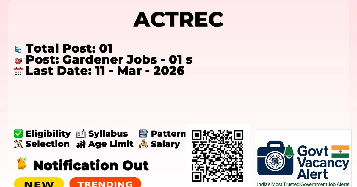 The Advanced Centre for Treatment Research and Education in Cancer (ACTREC) has declared the official notification for the recruitment of Gardener Jobs. Those candidates who have qualified in the 8th can grab this chance and apply for the ACTREC Recruitment 2026. Here we included the age limit, selection process, and salary structure, education details, application fee, and how to apply for these posts.