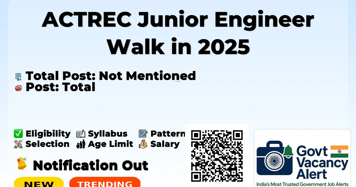 Advanced Centre for Treatment Research and Education in Cancer (ACTREC) Recruitment 2025 for posts of Junior Engineer. Candidates with B.Tech/B.E, Diploma Can attend the walkin. The Walk-in on 19-11-2025. For detailed information please visit ACTREC official website, actrec.gov.in.