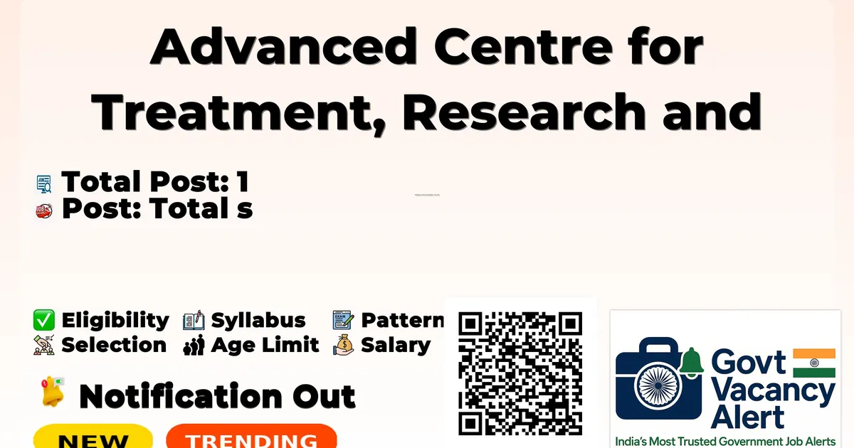 Company Name Advanced Centre for Treatment, Research and Education in Cancer (ACTREC) Post Name Office Assistant No of Posts 1 Advt No ACTREC/ADVT-36/2026 Salary Rs. 30,000/- Per Month Qualification Bachelor's degree (B.Sc. or any Graduation) Walk-in Date 09 March 2026 Apply Mode Walk-in Job Type Contract
