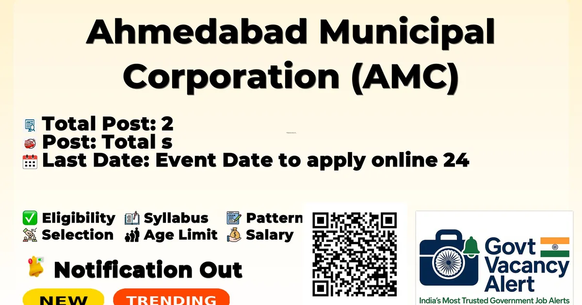 Ahmedabad Municipal Corporation (AMC) Recruitment 2026: Ahmedabad Municipal Corporation has released the official notification for 2 Medical Officer posts, inviting applications from eligible candidates in Gujarat. This recruitment provides an excellent opportunity for candidates seeking stable and well-paid government jobs. The last date to apply online is 24-03-2026, and candidates are strongly advised to complete their applications before the deadline. Below, you can find complete details of Medical Officer Recruitment 2026, including vacancy breakdown, eligibility, age limit, salary, selection process, application procedure, and important links. Advertisement Company Name Ahmedabad Municipal Corporation (AMC) Post Name Medical Officer No of Posts 2 Advt No 34 / 2025-26 Salary Rs. ₹53,100 - ₹1,67,800 Per Month Qualification MBBS degree from a recognized university, Completion of compulsory rotating internship Age Limit Max: 45 years Last Date 24 March 2026 Apply Mode Online Job Type Full Time Candidates should download and read the AMC Jobs 2026 notification PDF carefully to check vacancy details, eligibility, age limit, and application instructions. The notification also includes important dates and selection process details. The direct download link is available in the Important Links section below. Download AMC Medical Officer Job 2026 Notification PDF Post Name Total Posts Medical Officer 2 Total 2 Trending Govt Jobs RBI 650 Assistant Online Form 2026 IDBI Bank Junior Assistant Manager Online Form 2026 Indian Army Agniveer Recruitment Rally Notification 2026 AIIMS NORCET 10 Online Form 2026 HPCL 731 Engineers, JEA and More Online Form 2026 MBBS degree from a recognized university Completion of compulsory rotating internship Category Fee General/OBC Rs. 500 SC/ST Rs. 250 PwBD Nil Maximum Age: 45 years Age Relaxation: Divyangjan (PwD): 10 years relaxation; Maximum age cannot exceed 45 years (relaxable for existing AMC employees) Pay Matrix Level-9, ₹53,100 – ₹1,67,800 Per Month Event Date Last date to apply online 24 March 2026 Written test / Online test (if conducted) Interview / Document Verification Applications must be submitted online on or before 24-03-2026. To apply directly, use the Apply Online link provided in the Important Links section. Alternatively, candidates may visit the official website of AMC to complete the application. Fill out the application form carefully with correct personal, educational, and contact details. Upload required documents such as photograph, signature, and certificates in the prescribed format. Pay the application fee online, if applicable. Review all details carefully before submitting the form. Take a printout or save a copy of the submitted application for future reference. Link Description Link Official Notification PDF Click here Apply Online Click here Official Website Click here