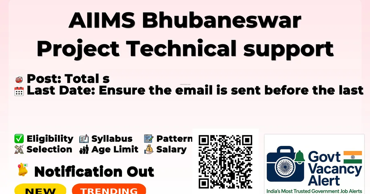 All India Institute of Medical Sciences Bhubaneswar (AIIMS Bhubaneswar) has released an official notification for the recruitment of 01 Project Technical support III Posts. Interested and eligible candidates can apply Online through the official AIIMS Bhubaneswar website. The last date to submit the application form is 27-02-2026. In this article, you’ll find the AIIMS Bhubaneswar Project Technical supportIII Posts recruitment details, including eligibility criteria, age limit, salary structure, selection process, application steps, and direct links to the official notification and Online application form.