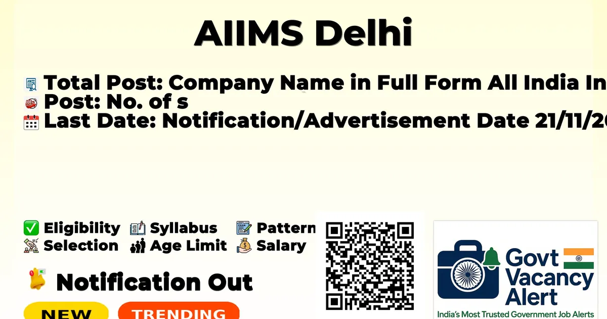 | Company Name in Full Form | All India Institute of Medical Sciences, New Delhi |