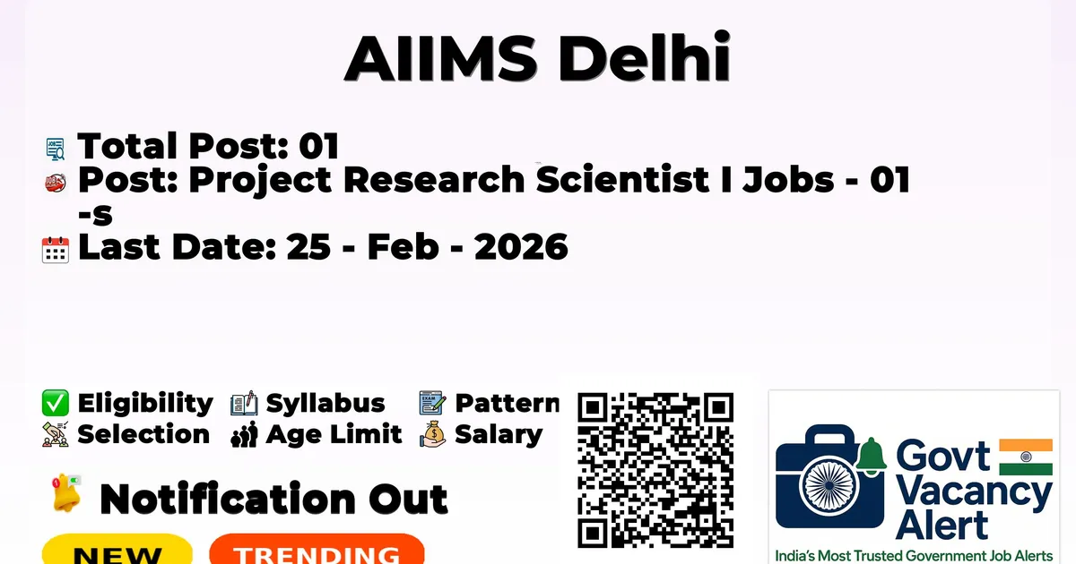 All India Institute of Medical Sciences Delhi (AIIMS Delhi) has released an official notification for the recruitment of various Project Research Scientist I Posts. Those candidates who have qualified in the Post-Graduation can grab this chance and apply for the AIIMS Delhi Recruitment 2026. Interested and eligible candidates can apply before the application ends. Here we provided more about the age limit, selection process, salary structure, education details, application fee, and how to apply for these posts.