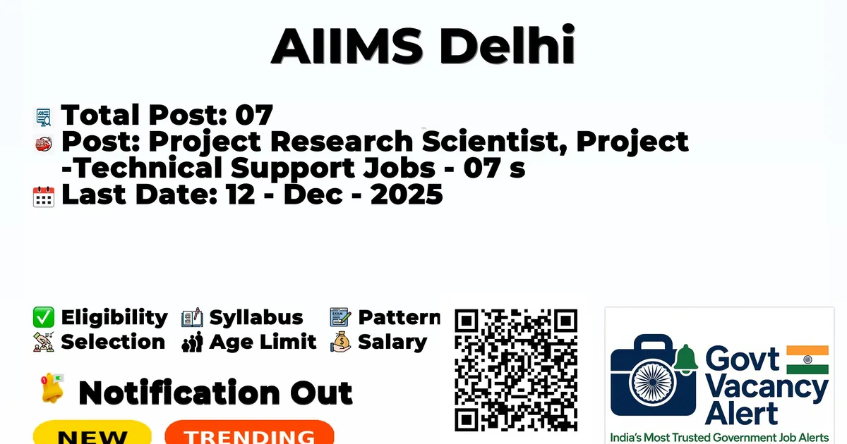 All India Institute of Medical Sciences, Delhi (AIIMS Delhi) has declared the official notification for 2025. To fill up the vacancies for 07 Project Research Scientists, Project Technical Support Jobs. Those candidates who have qualified in the MBBS, BDS, Any Degree, or Post Graduation can grab this chance and apply for the AIIMS Delhi Recruitment 2025. Here we include the age limit, selection process, salary structure, education details, application fee, and how to apply for these posts. Interested and eligible candidates can apply online before the last date of application.