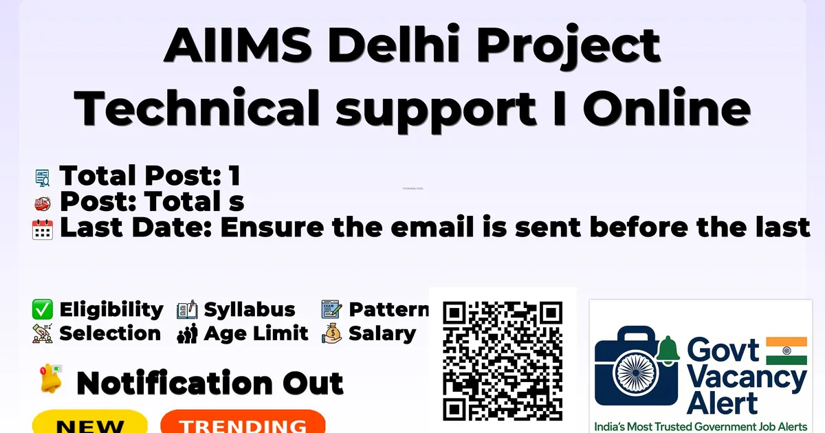 All India Institute of Medical Sciences Delhi (AIIMS Delhi) has released an official notification for the recruitment of 01 Project Technical support I Posts. Interested and eligible candidates can apply Online through the official AIIMS Delhi website. The last date to submit the application form is 04-03-2026. In this article, you’ll find the AIIMS Delhi Project Technical support I Posts recruitment details, including eligibility criteria, age limit, salary structure, selection process, application steps, and direct links to the official notification and Online application form.