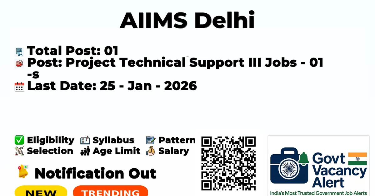 AIIMS Delhi — Project Technical Support III Jobs - 01 Posts