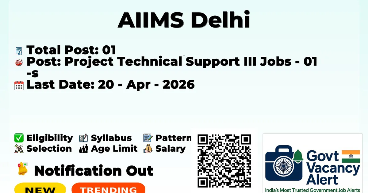 All India Institute of Medical Sciences (AIIMS) Delhi has declared the official notification for 2026. To fill up the various vacancies for Project Technical Support III Jobs. Those candidates who have qualified for any degree can use this chance and apply for the AIIMS Delhi Recruitment 2026. Here, we included the age limit, selection process, salary structure, education details, application fee, and how to apply for these posts.