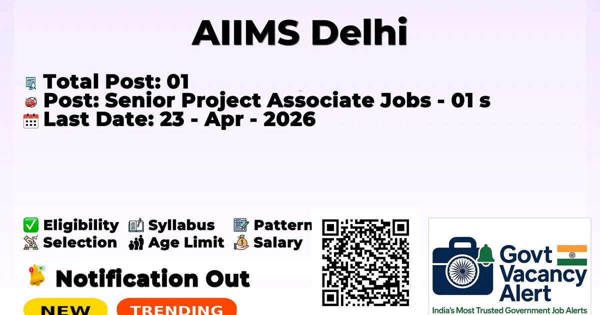 All India Institute of Medical Sciences (AIIMS) Delhi has declared the offcial notification for 2026. To fill up the vacancies for Senior Project Associate Jobs. Those candidates who have qualified in the B.Sc, M.Sc, B.V.Sc, B.Pharm, MD/ MS, can grab this chance and apply for the AIIMS Delhi Recruitment 2026. Here we included the age limit, selection process, and salary structure, education details, applciation fee, and how to apply for these posts.