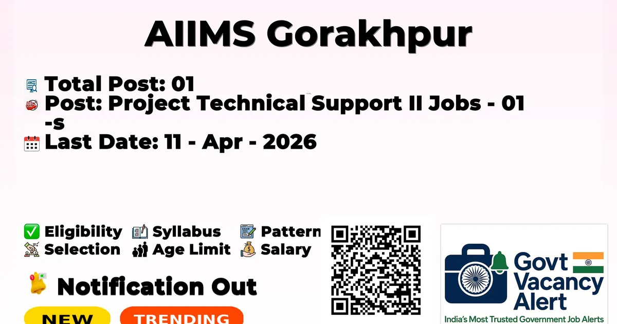 All India Institute of Medical Sciences, Gorakhpur (AIIMS Gorakhpur) announced an official notification for the post of Project Technical Support II. Those candidates who have qualified in the Any Degree, DMLT can grab this chance and apply for the AIIMS Gorakhpur Recruitment 2026. Here, we mentioned the age limit, selection process, salary structure, education details, application fee, and how to apply for these posts. Interested and eligible candidates can attend the walk-in at the address below.