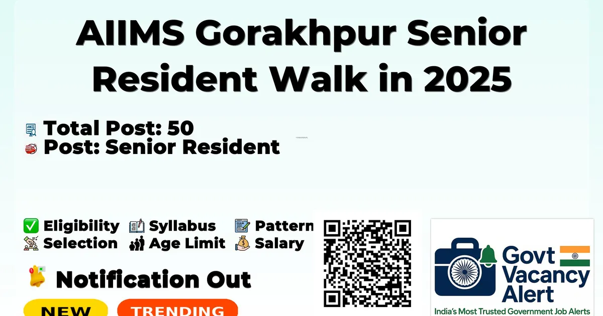 All India Institute of Medical Sciences Gorakhpur (AIIMS Gorakhpur) Recruitment 2025 for 50 posts of Senior Resident. Candidates with MS/MD Can attend the walkin. The Walk-in on 16-09-2025. For detailed information please visit AIIMS Gorakhpur official website, aiimsgorakhpur.edu.in.