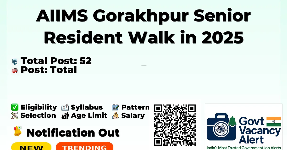 All India Institute of Medical Sciences Gorakhpur (AIIMS Gorakhpur) Recruitment 2025 for 52 posts of Senior Resident. Candidates with MS/MD Can attend the walkin. The Walk-in on 29-10-2025. For detailed information please visit AIIMS Gorakhpur official website, aiimsgorakhpur.edu.in.