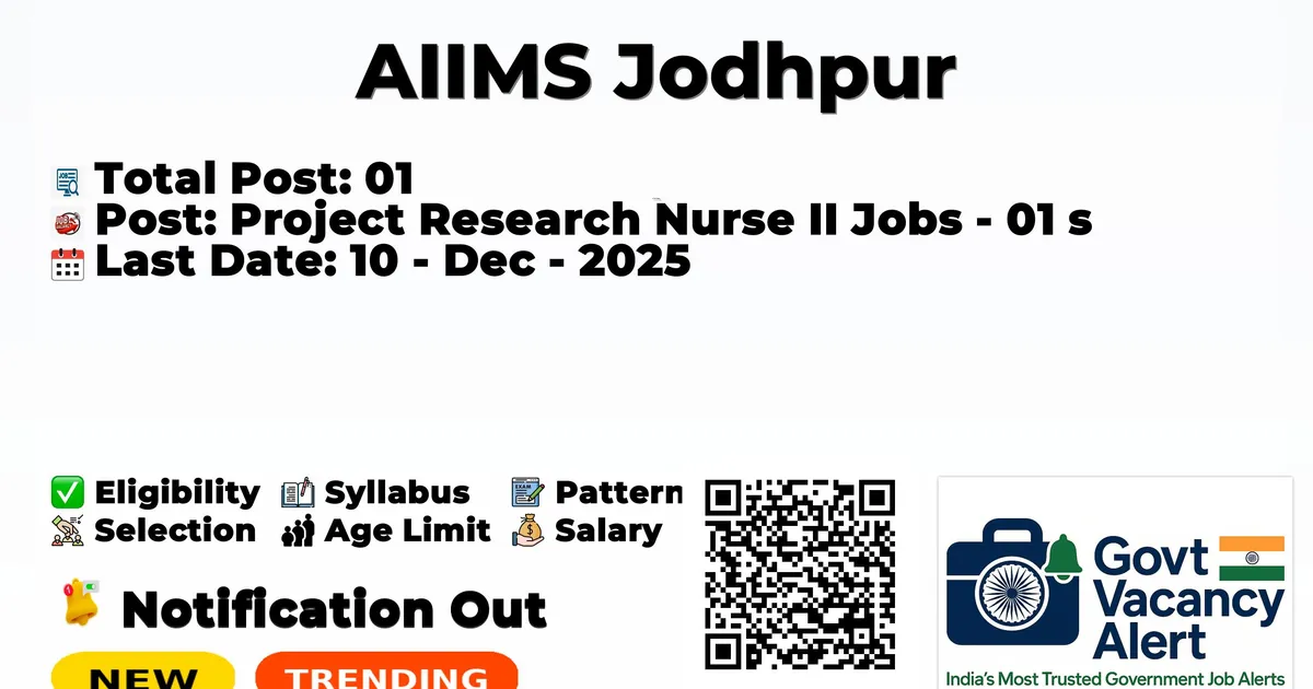 All India Institute of Medical Sciences Jodhpur (AIIMS Jodhpur) has declared the official notification for 2025. To fill up the vacancies for Project Research Nurse II Jobs. Those candidates who have qualified in the GNM can grab this chance and apply for the AIIMS Jodhpur Recruitment 2025. Here, we meant the age limit, selection process, salary structure, education details, application fee, and how to apply for these posts. Interested and eligible candidates can attend the walk-in at the address given below.