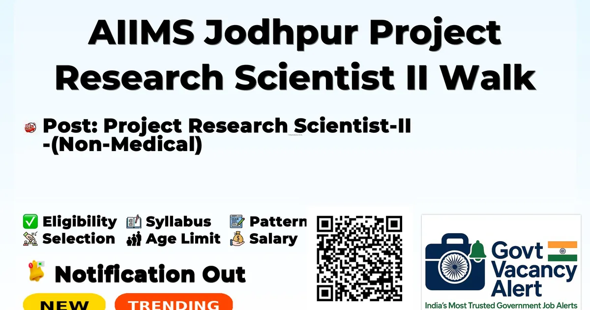 AIIMS Jodhpur Project Research Scientist II Walk In 2026 — Project Research Scientist-II (Non-Medical)
