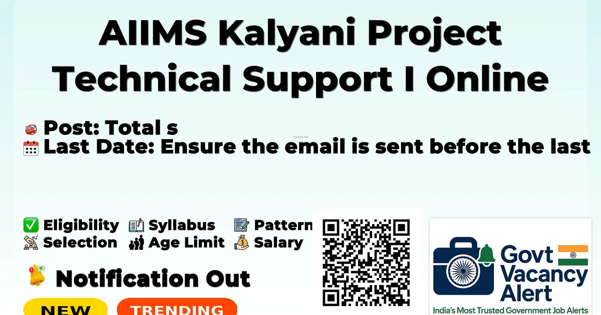 All India Institute of Medical Sciences Kalyani (AIIMS Kalyani) has released an official notification for the recruitment of 01 Project Technical Support I Posts. Interested and eligible candidates can apply Online through the official AIIMS Kalyani website. The last date to submit the application form is 05-03-2026. In this article, you’ll find the AIIMS Kalyani Project Technical Support I Posts recruitment details, including eligibility criteria, age limit, salary structure, selection process, application steps, and direct links to the official notification and Online application form.