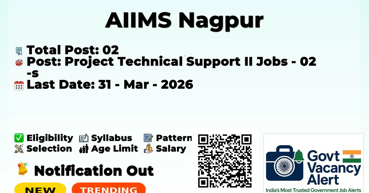 The All India Institute of Medical Sciences, Nagpur (AIIMS Nagpur) has officially released the notification to fill the vacancies of 02 Project Technical Support II Posts. Interested and eligibile candidates can use this opportunity to apply for these posts before the last date of application. Candidates who have completed their Diploma, DMLT, GNM, and 12th can apply for the AIIMS Nagpur Jobs 2026. The interested applicants can apply in online mode. Here we have mentioned the education details, age limit, selection process, application fee, salary, and how to apply for these posts before the deadline. The application dates have already begun.