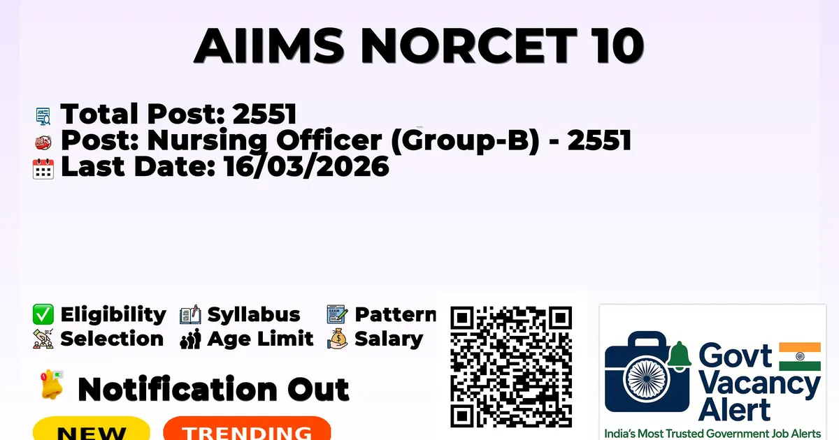 | B.Sc Nursing Candidates | 18-30 Years | B.Sc. (Hons.) Nursing / B.Sc. Nursing / B.Sc. (Post-Certificate) / Post-Basic B.Sc. Nursing from recognized Institute/University + Registered as Nurse & Midwife with State/Indian Nursing Council |