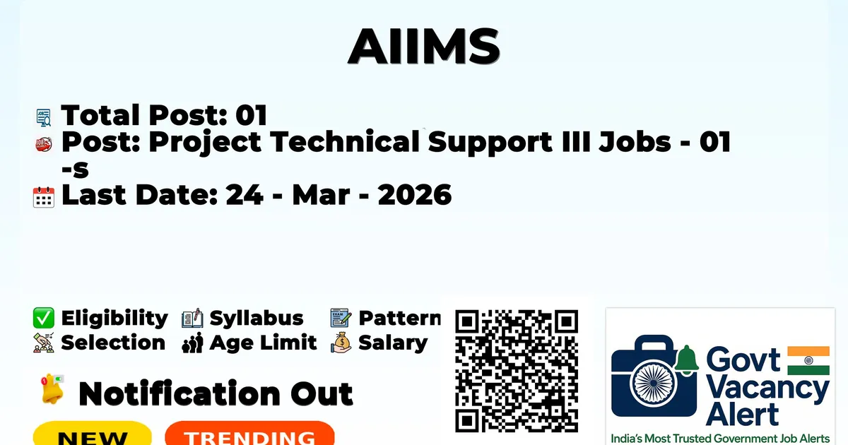 AIIMS — Project Technical Support III Jobs - 01 Posts