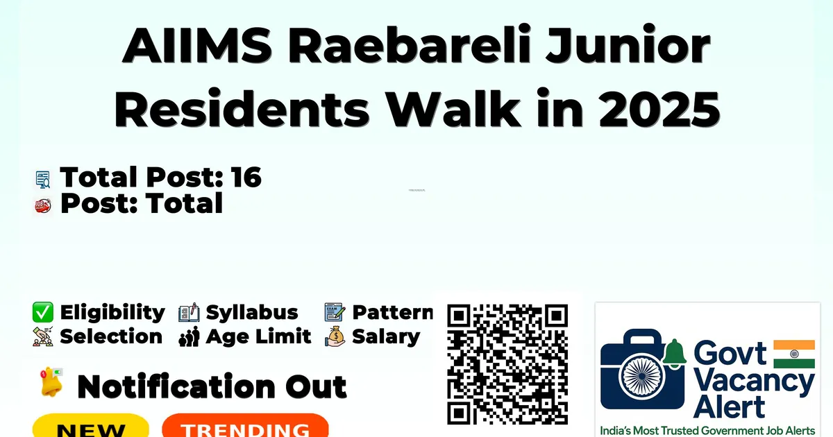 AIIMS Raebareli Junior Residents Walk in 2025 — Total